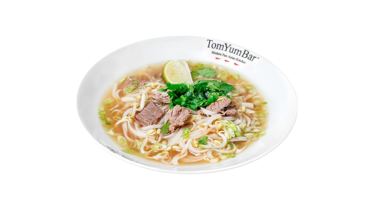 Пряный традиционный вьетнамский суп на говяжьем бульоне с рисовой лапшой, ростками маш и говядиной. Подается c зеленым луком, кинзой и лаймом