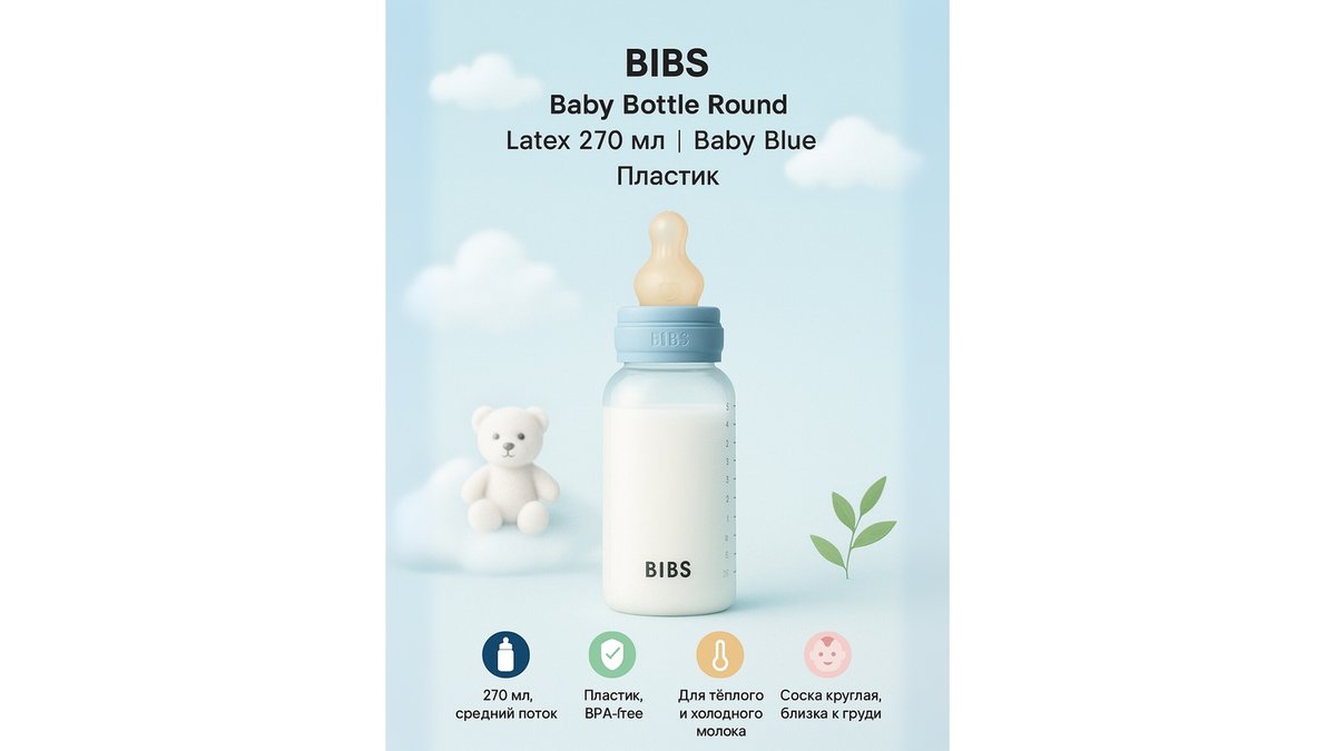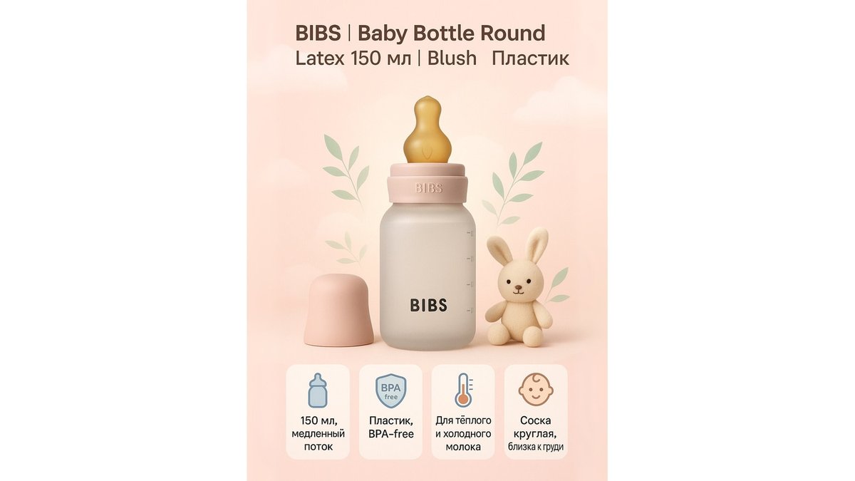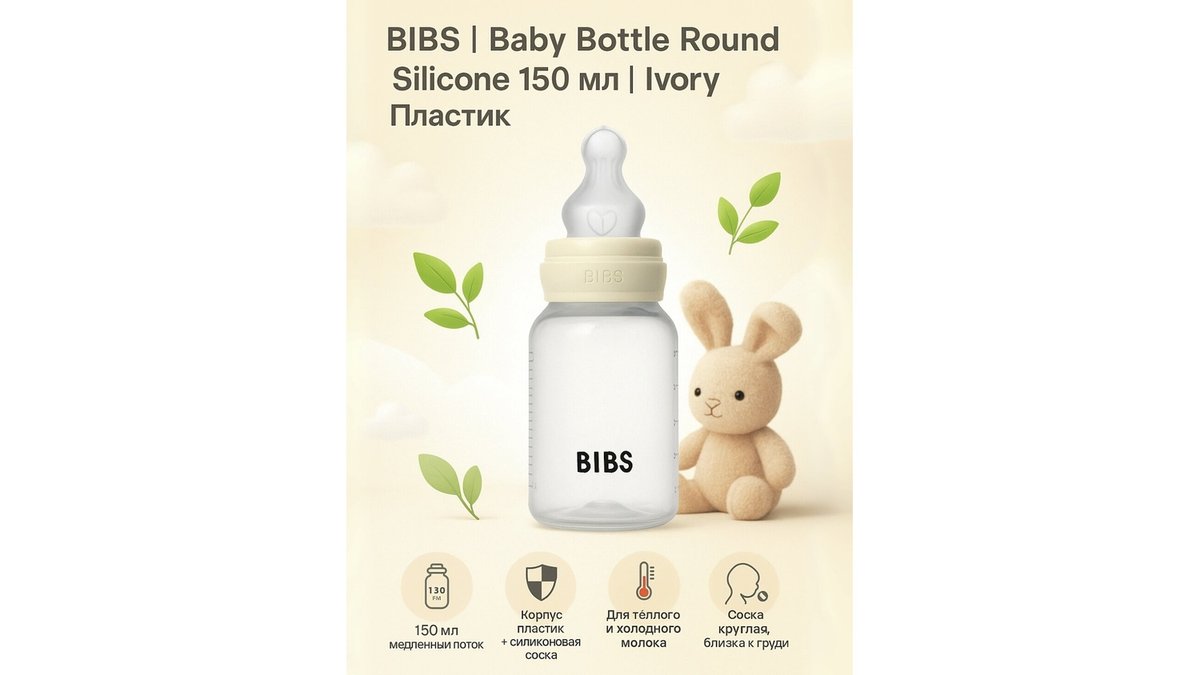 Бутылочка BIBS 150 мл, медленный поток, антиколик – Blush (латекс), Sage и Ivory (силикон)