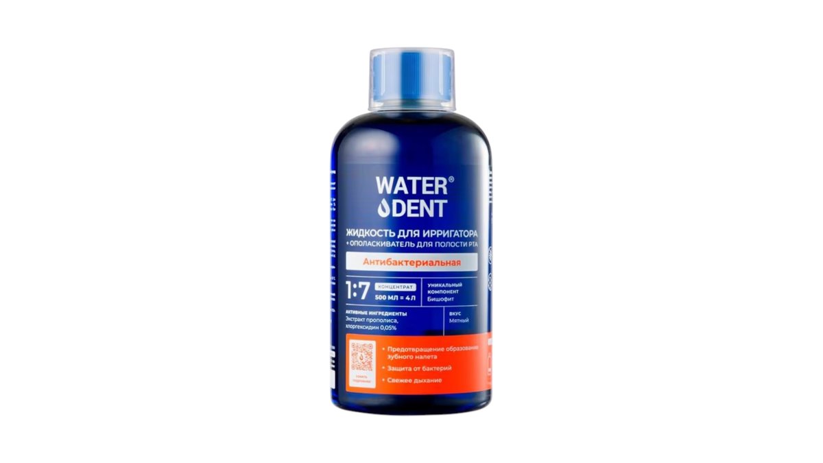 Жидкость для ирригатора + ополаскиватель для полости рта 2в1 «WATERDENT» Антибактериальная