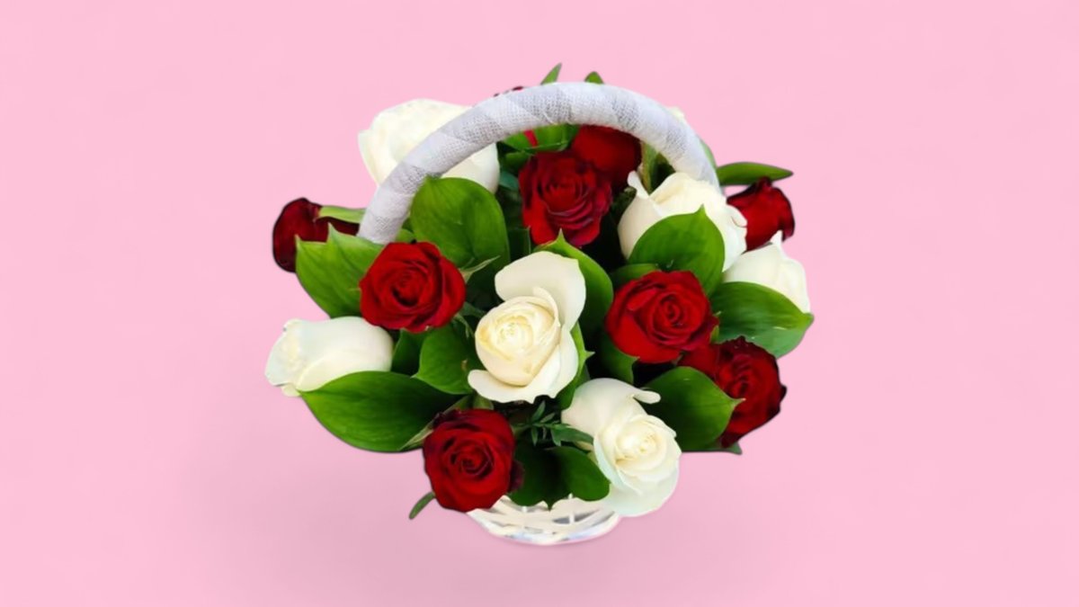 Розы 15 штук - белые и красные
