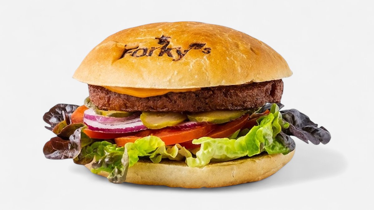 Forky‘s burger, obohacený o plátek rostlinného čedaru s velmi autentickou chutí.