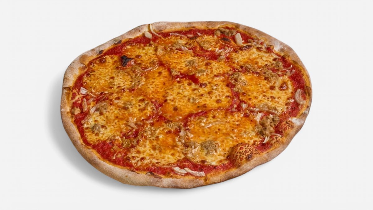 loupaná rajčata, mozzarella, tuňák, cibule (Při změně přísad použijte kategorii PŘÍSADY NA PIZZU!)