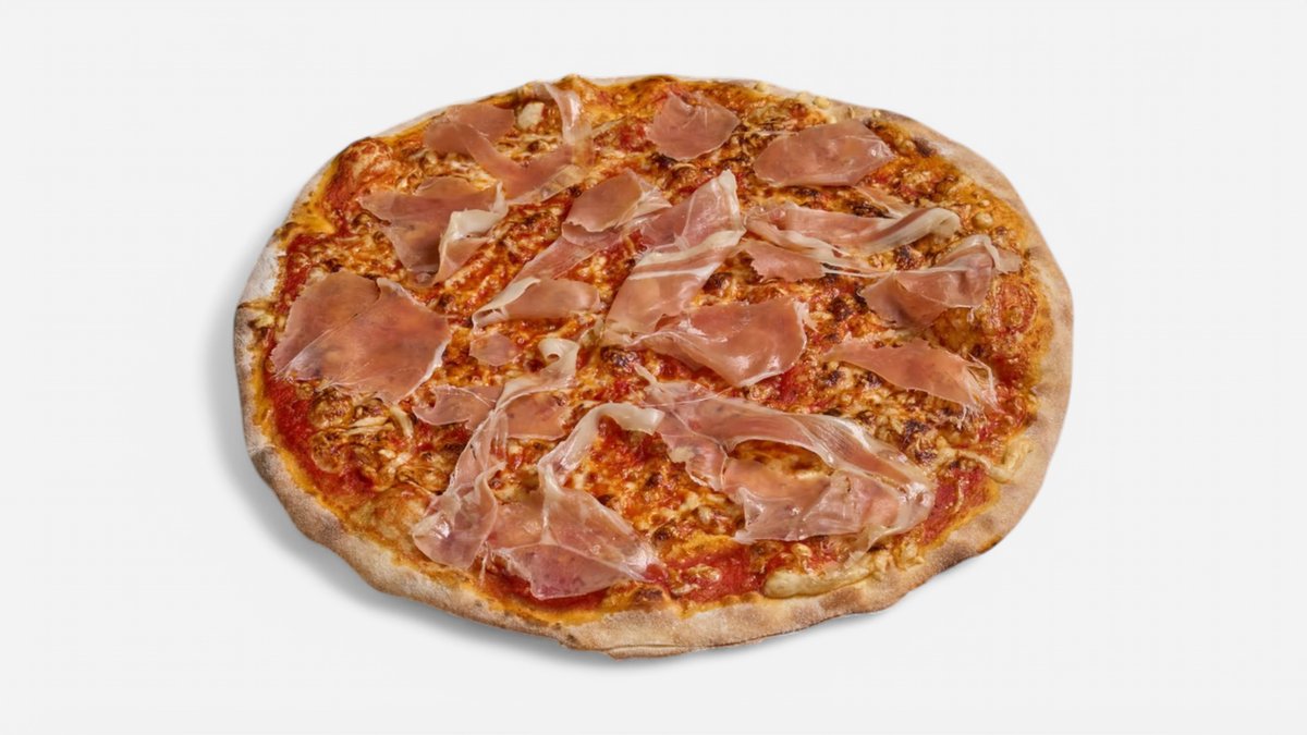 loupaná rajčata, mozzarella, sušená šunka (Při změně přísad použijte kategorii PŘÍSADY NA PIZZU!)