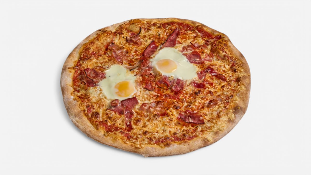loupaná rajčata, mozzarella, slanina, sázené vejce (Při změně přísad použijte kategorii PŘÍSADY NA PIZZU!)