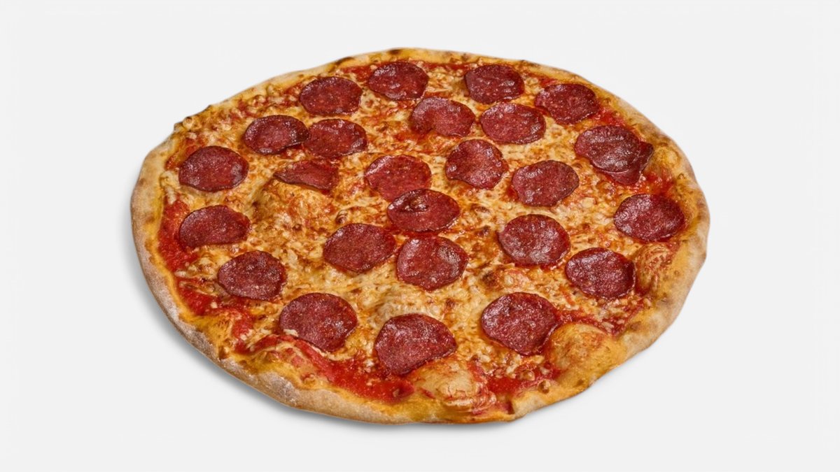 loupaná rajčata, mozzarella, šunka, slanina, kukuřice, feferony (Při změně přísad použijte kategorii PŘÍSADY NA PIZZU!)