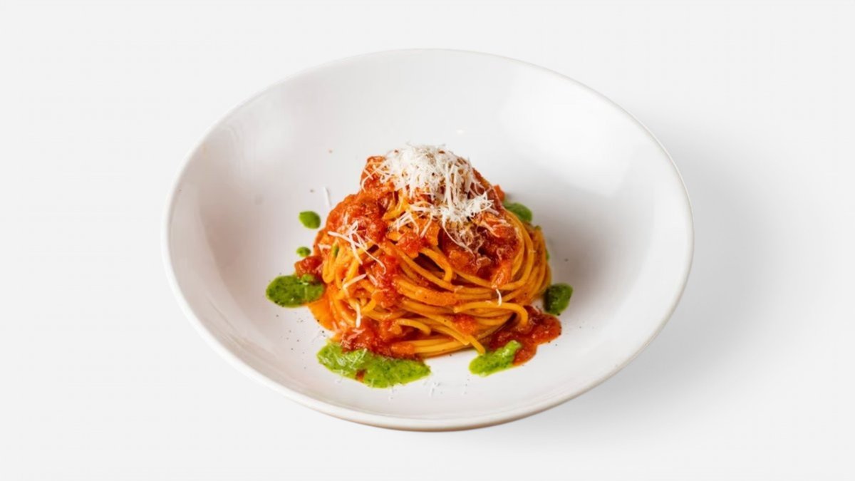 passata di pomodoro, pancetta, černé olivy, cibule, bílé víno, chilli, parmazán - záměna těstovin možná (Tagliatelle, Gnocchi)