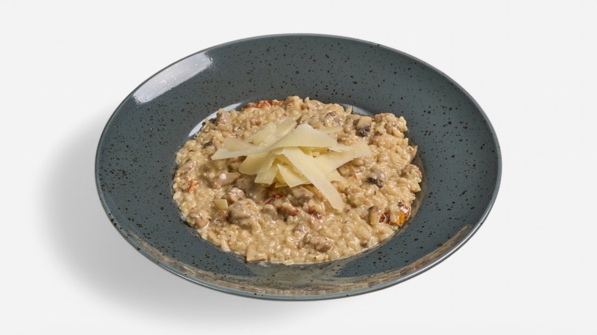 Italské risotto s vepřovou panenkou, smetanou, žampiony a sušenými rajčaty