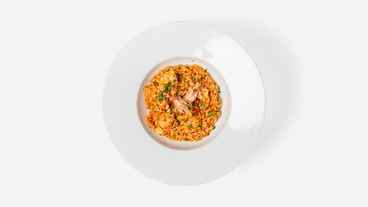 Italské risotto s krevetami, bílým bínem, sušenými rajčaty, česnekem, smetanou a chilli