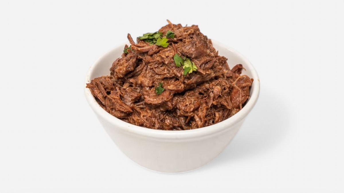 mleté hovězí, nakládaný okurek, salát, cibule, chilli paprička, chipotle omáčka