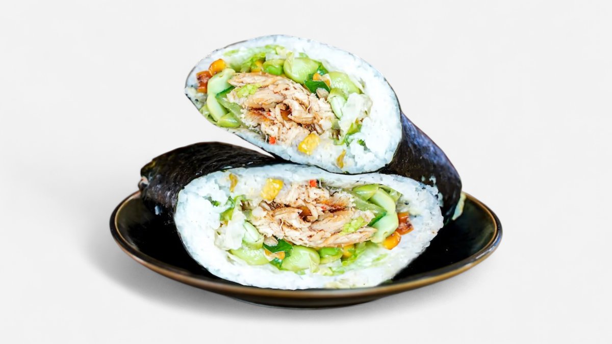 sushi rýže, grilované kuřecí, mango, rajčata, okurky, kukuřice, ledový salát, jarní cibulka, honey teriyaki, lemon mayo, sezamová semínka ( 300g)