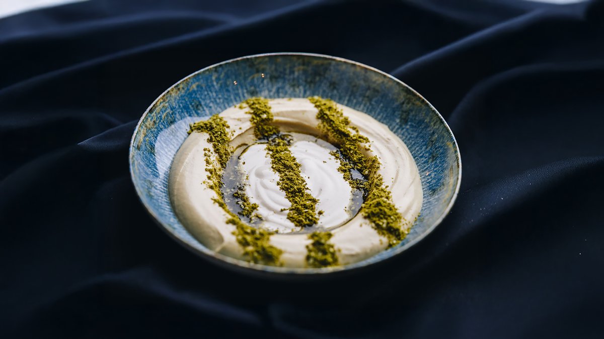 marinované sójové nudle, hummus, tahini, amba, saláty marinated soya noodles, hummus, tahini, amba, salads