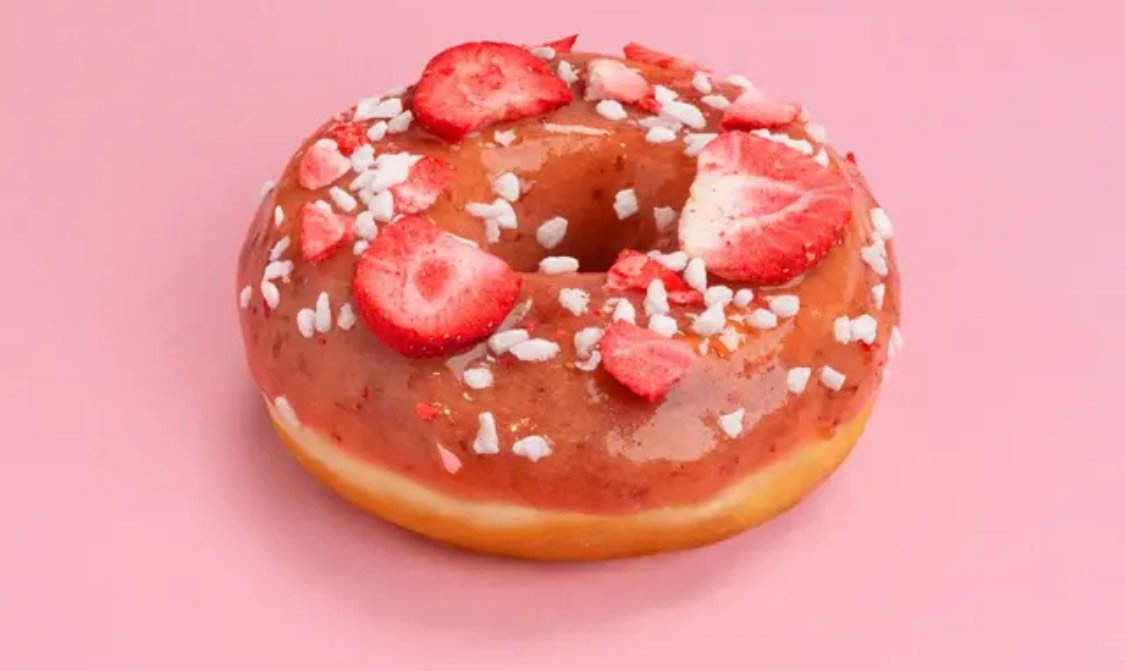 Osvěžující donut se sladkou malinovou glazurou, ozdobenou chutnými mraženými sušenými malinami. Dostupný také v Low Sugar verzi. (VEGAN) Obsahuje: 1