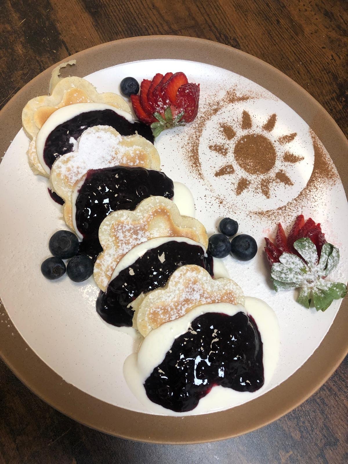 2ks vafle, marmeláda nebo nutela + ovoce + šlehačka