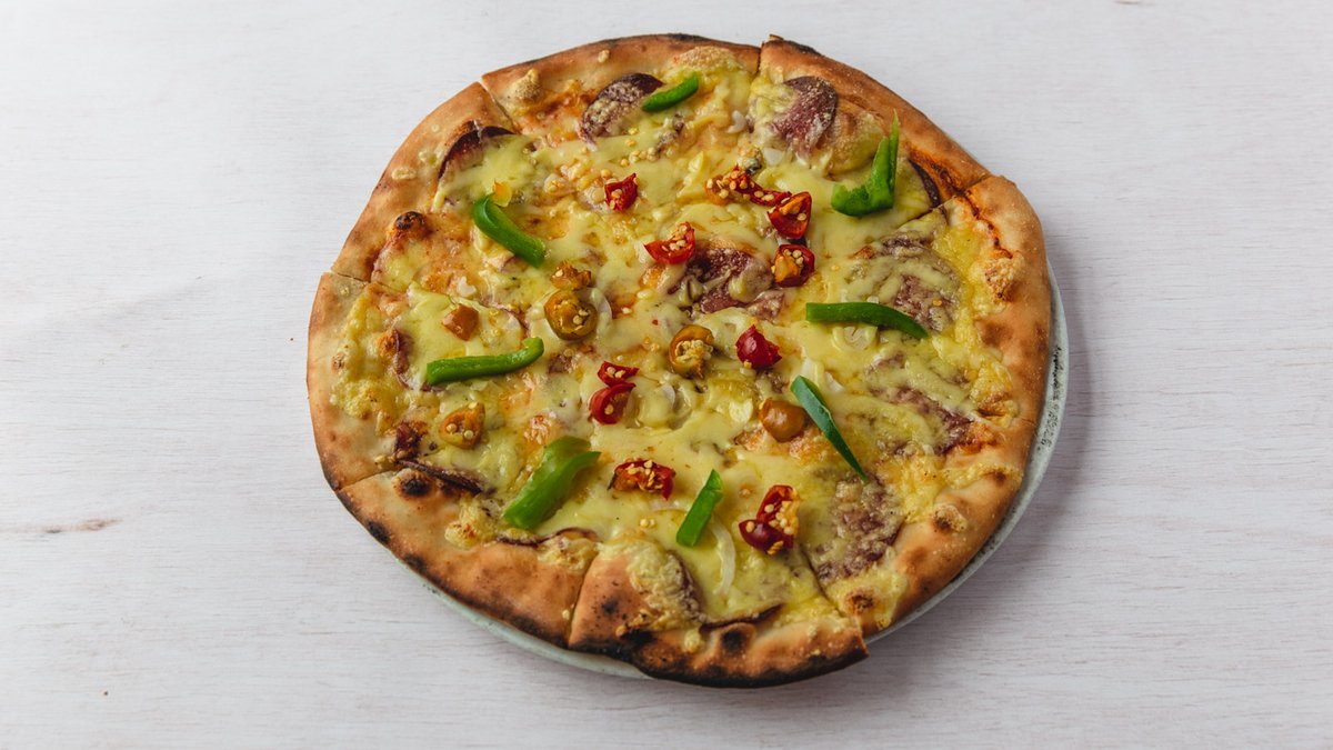 Tomato, chorizo, mozzarella a jalapeños.