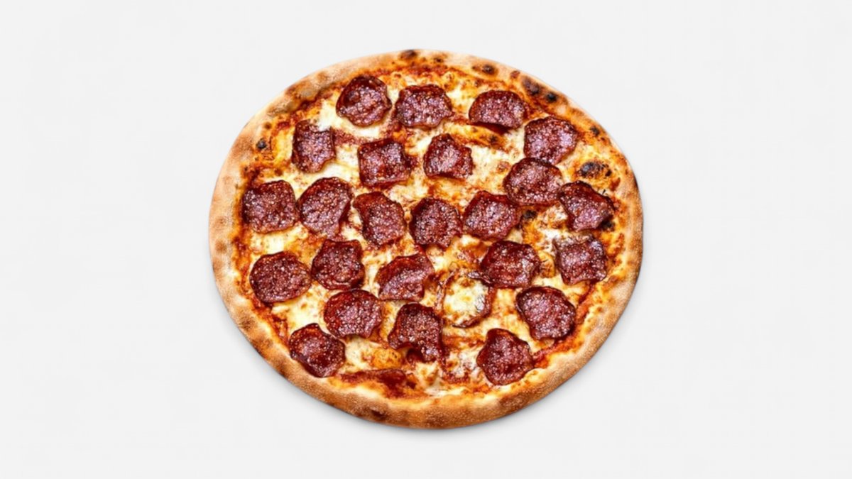 rajčata, mozzarella, pikantní salám, kukuřice, chilli