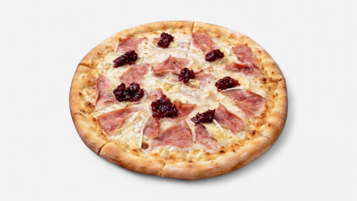 Smetana, mozzarella, šunka, hermelín, brusinky