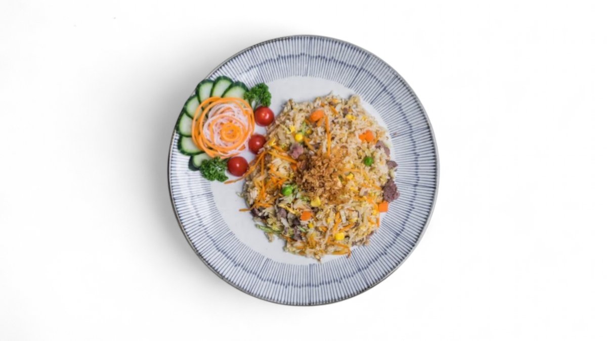 Zázvor, okurka, meloun cantaloupe, švestková a zázvor, hoisin omáčka a restovaná rýže