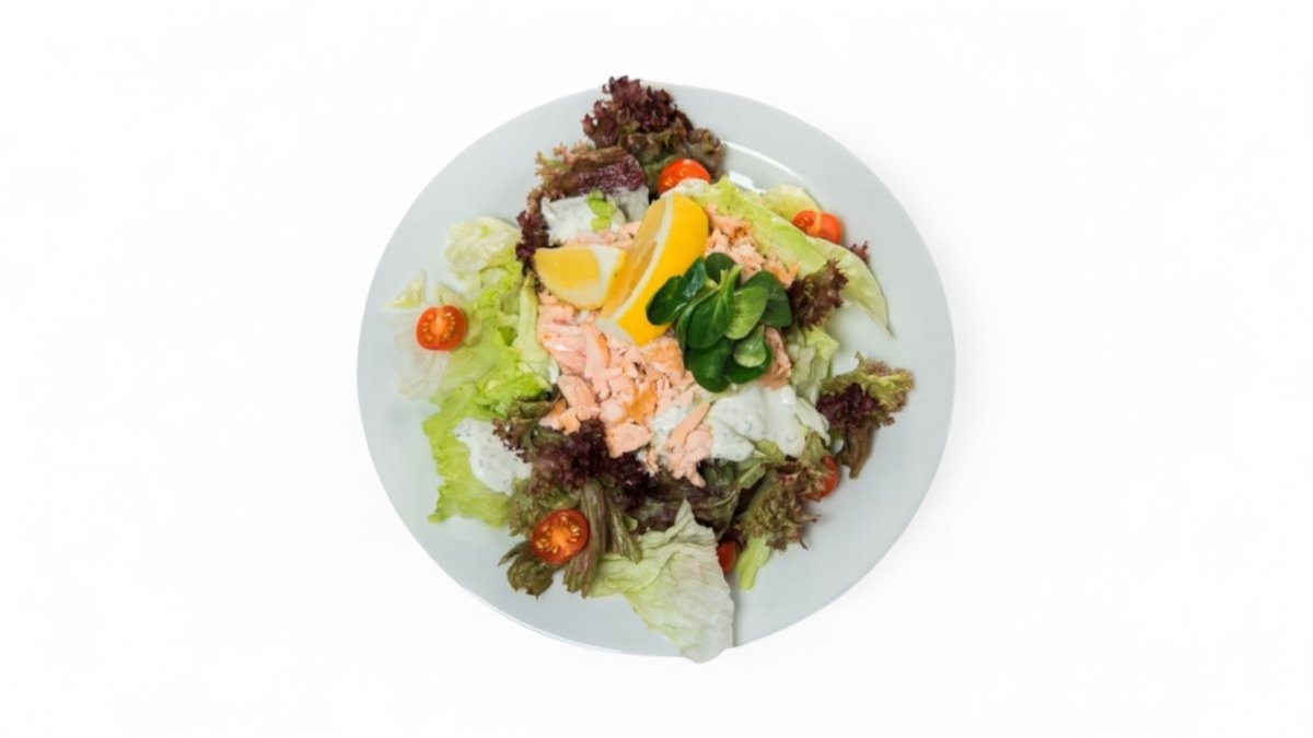 Losos v tempuře, čerstvá zelenina, arašidy, wasabi majonéza a Japonská omáčka