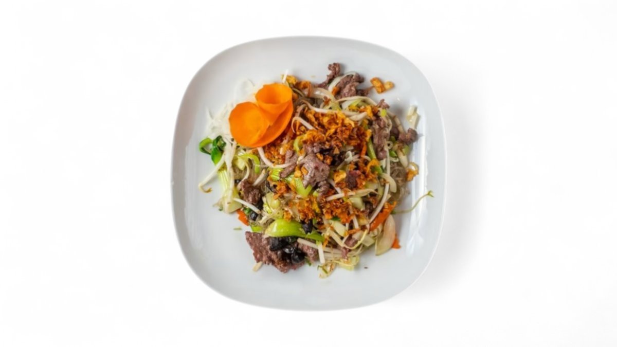 Rýžové nudle se zeleninou a tmavá sójová omáčka