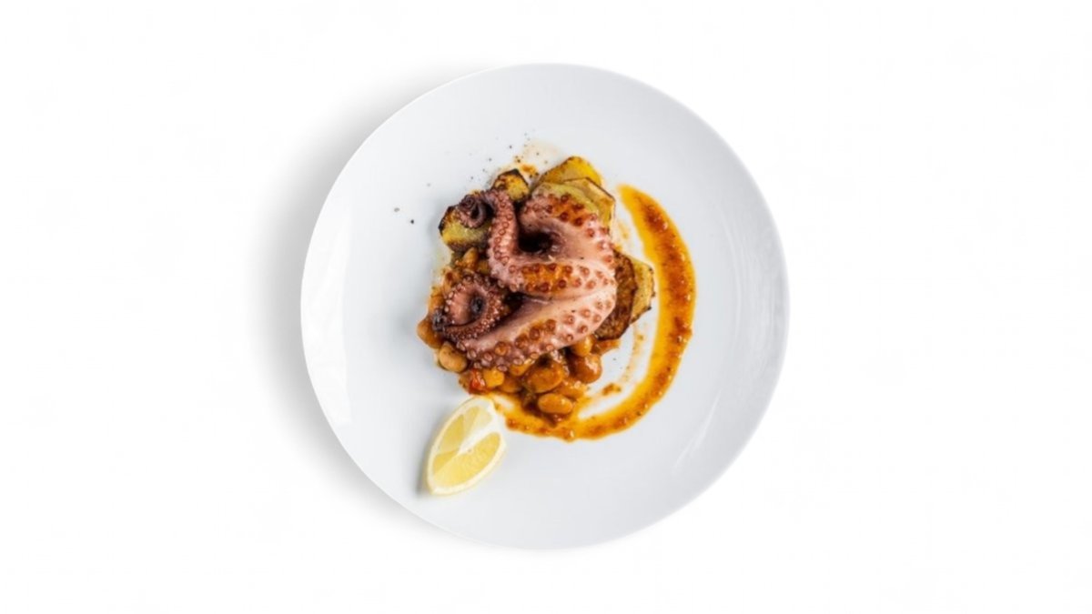 Grilovaná chobotnice chapadla v sezamové omáčce, pak choi a mungo klíčky