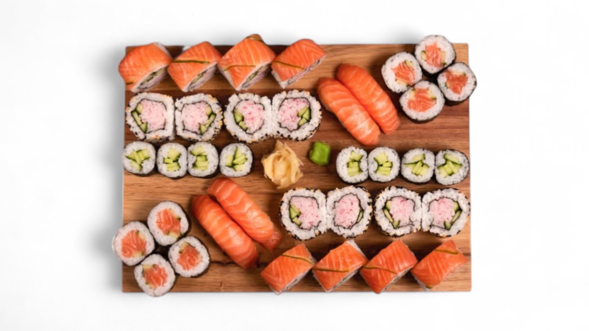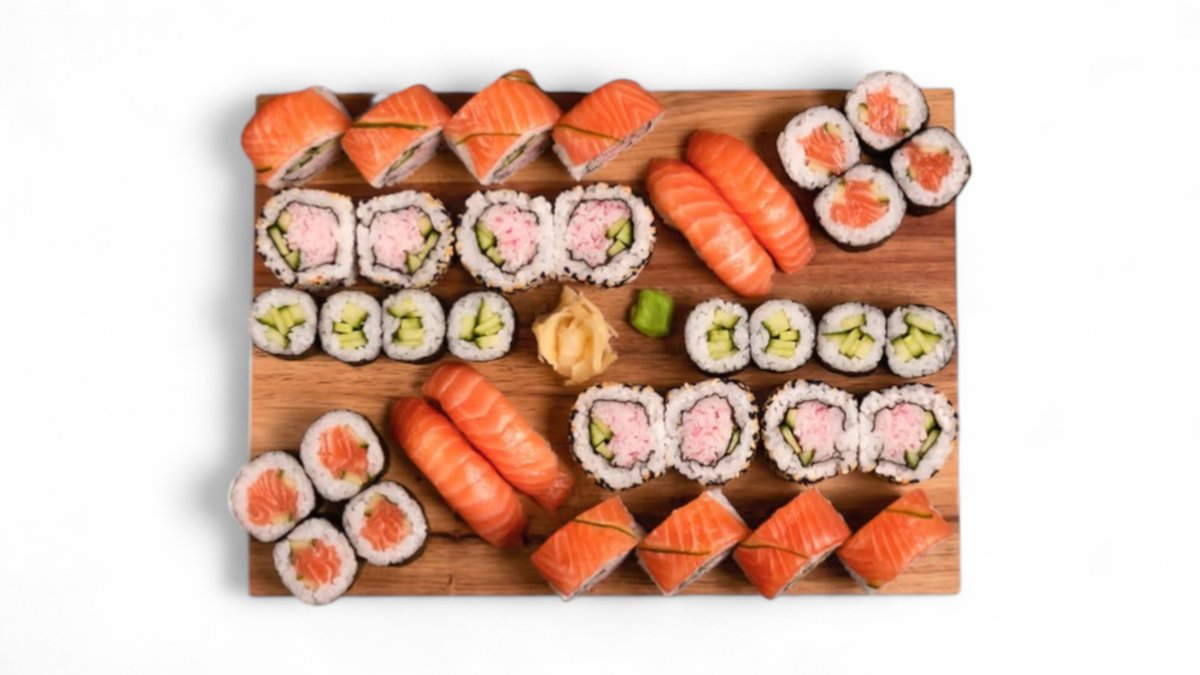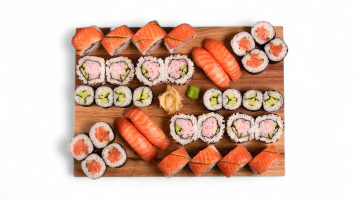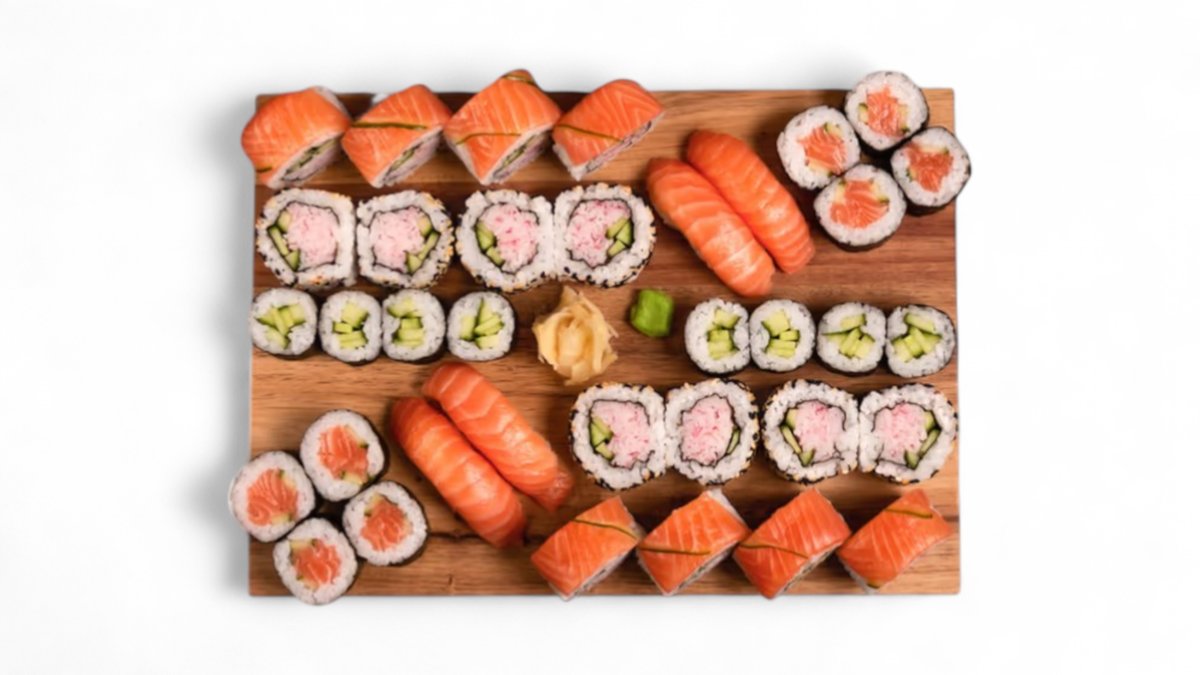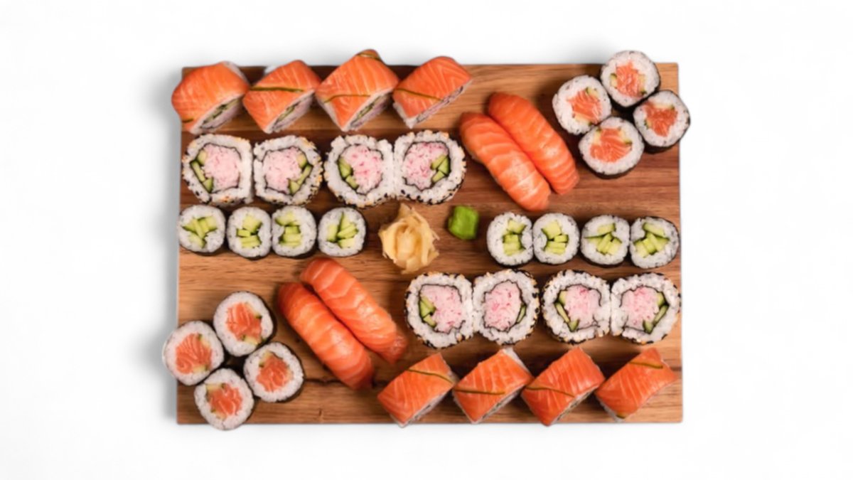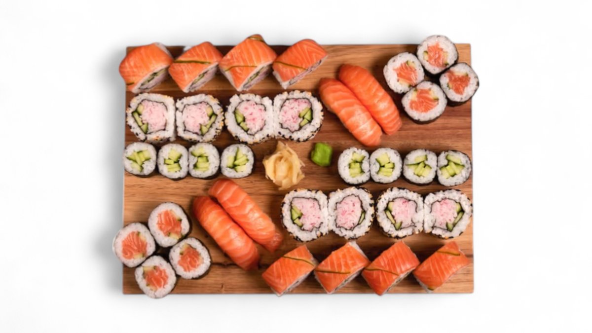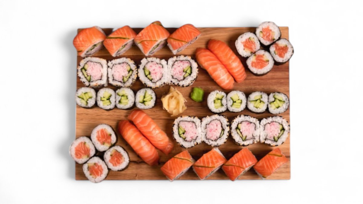 16 ks maki (Losos a krevety), 12 ks sashimi (Losos, sled, chobotnice a tuňák), 8 ks nigiri (Losos, úhoř, krevety a avokádo), 16 ks salmon roll, sunshine roll, 8 ks geisha roll, 8 ks winter roll a 8 ks cali losos