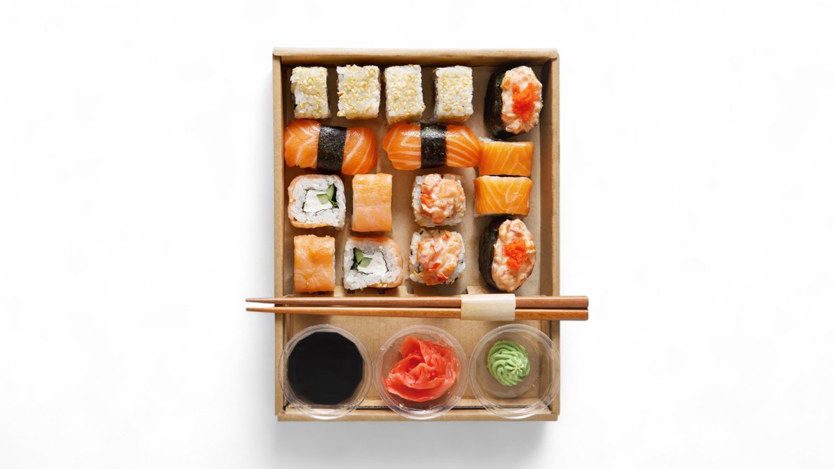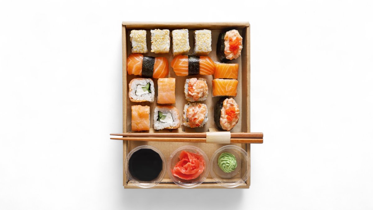 8 ks maki tuňák, 8 ks cali a 2 ks nigiri