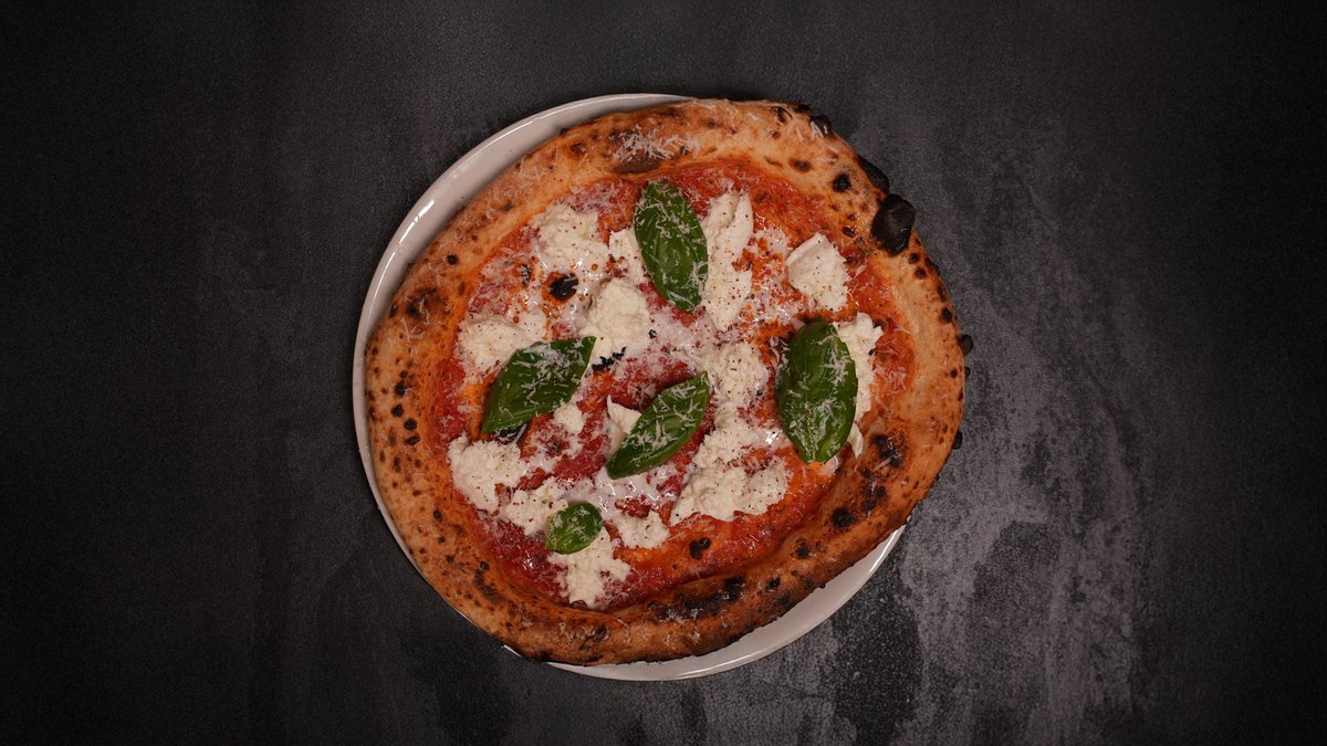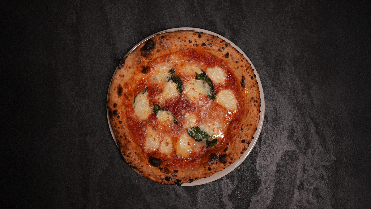 sugo, sýr grana padano, sýr buvolí mozzarella, pepř, čerstvá bazalka, olivový olej