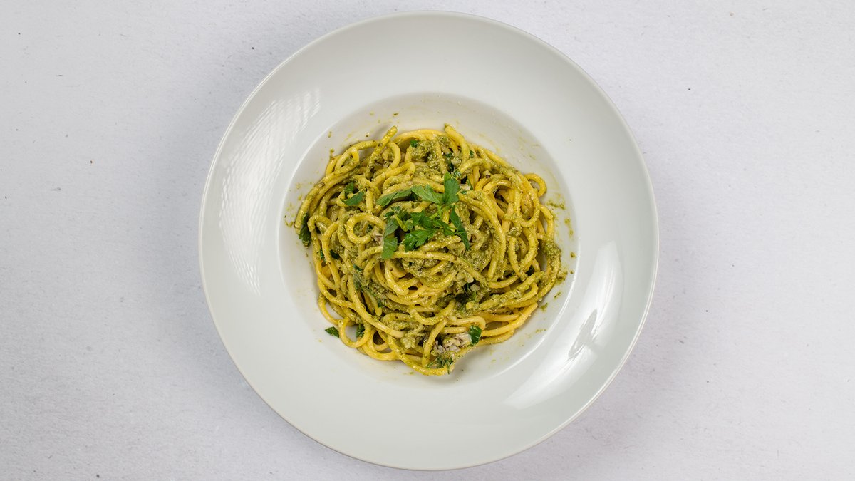 bazalka, piniové oříšky, máslo, česnek, sůl, pepř, EVO