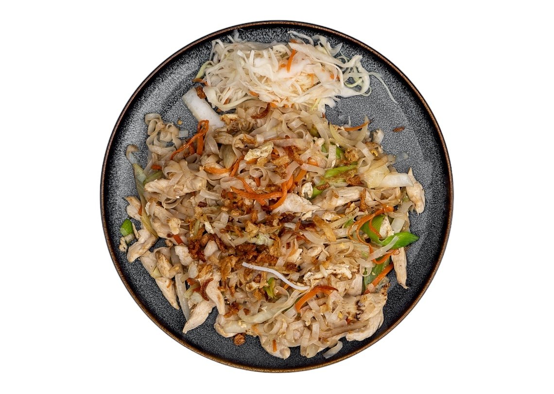 smažené (ploché) nudle phos kuřecím masem a zeleninou