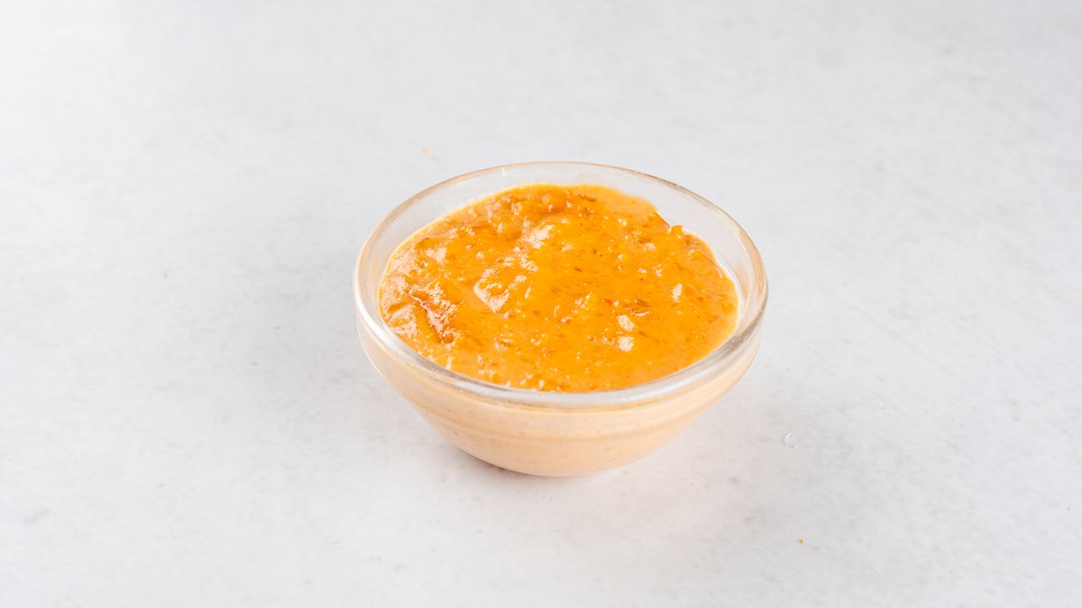 160g mleté hovězí maso, sušená šunka, sýr Monterey Jack, rukola, rajče, pesto ze sušených rajčat, grilovaná červená cibule, domácí rajčatová omáčka