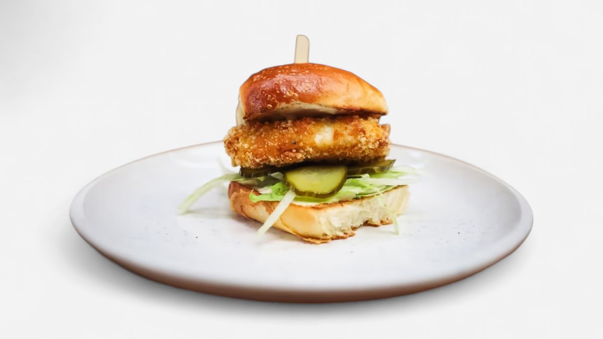 110 g BIO eidam (Ekofarma Javorník) v panko strouhance, tatarka, leďák, brusinky, naše bulka