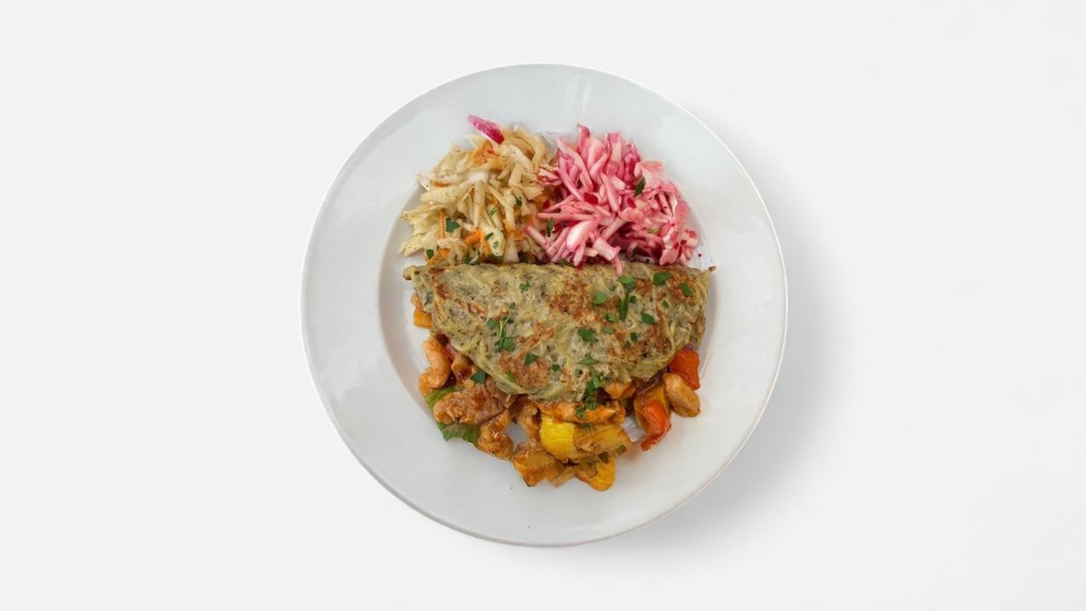 - trhané listy, zelenina, grilovaný kuřecí steak, slunečnicové a lněné semínko, bylinkový olej