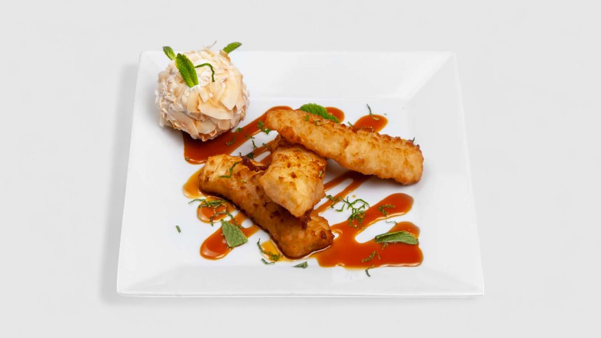 Smažený ananas v těstíčku s medem a mandlemi
