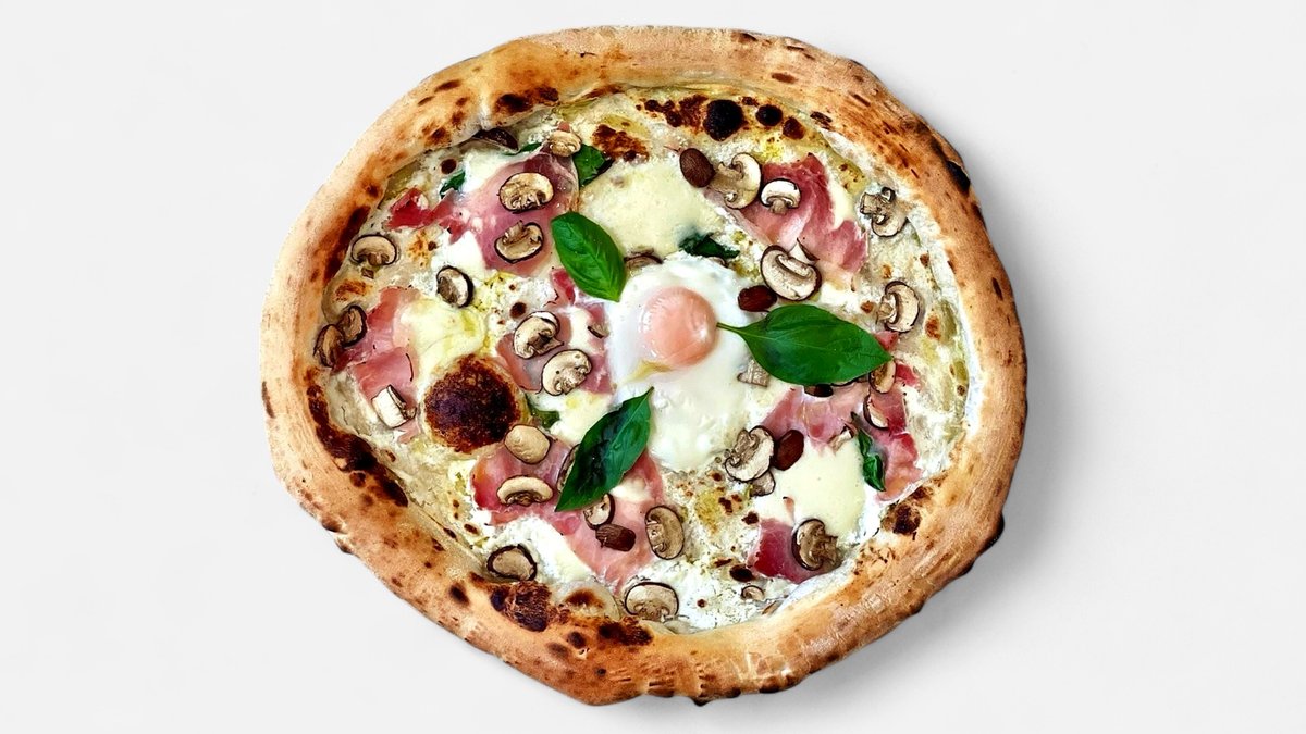 dušená šunka Prosciutto Cotto, čerstvé žampiony, vejce, Mozzarella Fior di Latté, Ricotta, Grana Padano