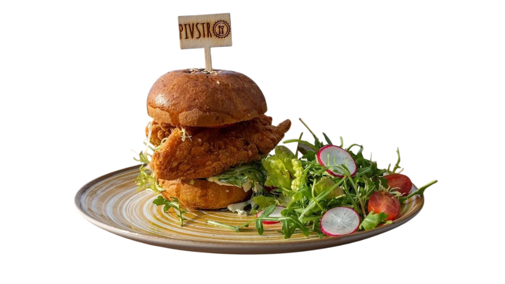 Chicken Burger s jemně pikantními stripsy