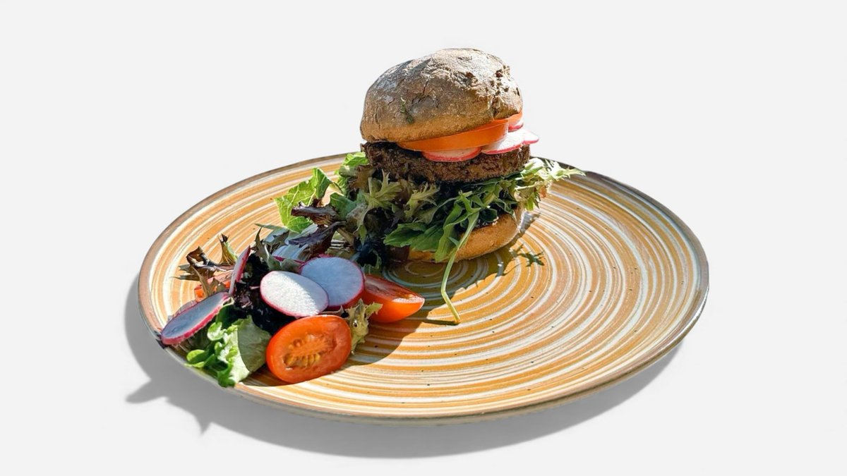 Vegan Burger s avokádovou plackou v tmavé bulce