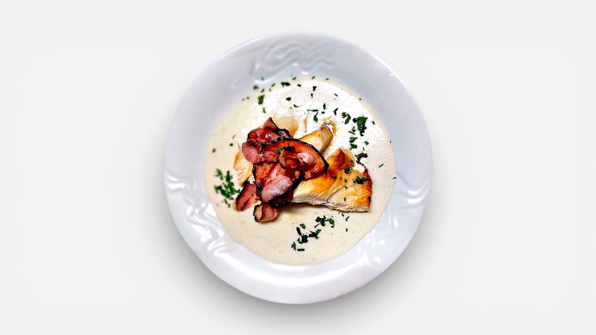 Kuřecí prsa ve slanině s omáčkou z modrého sýra