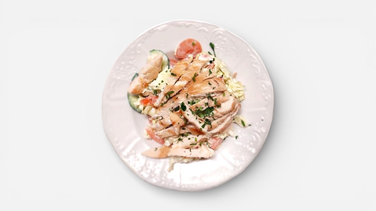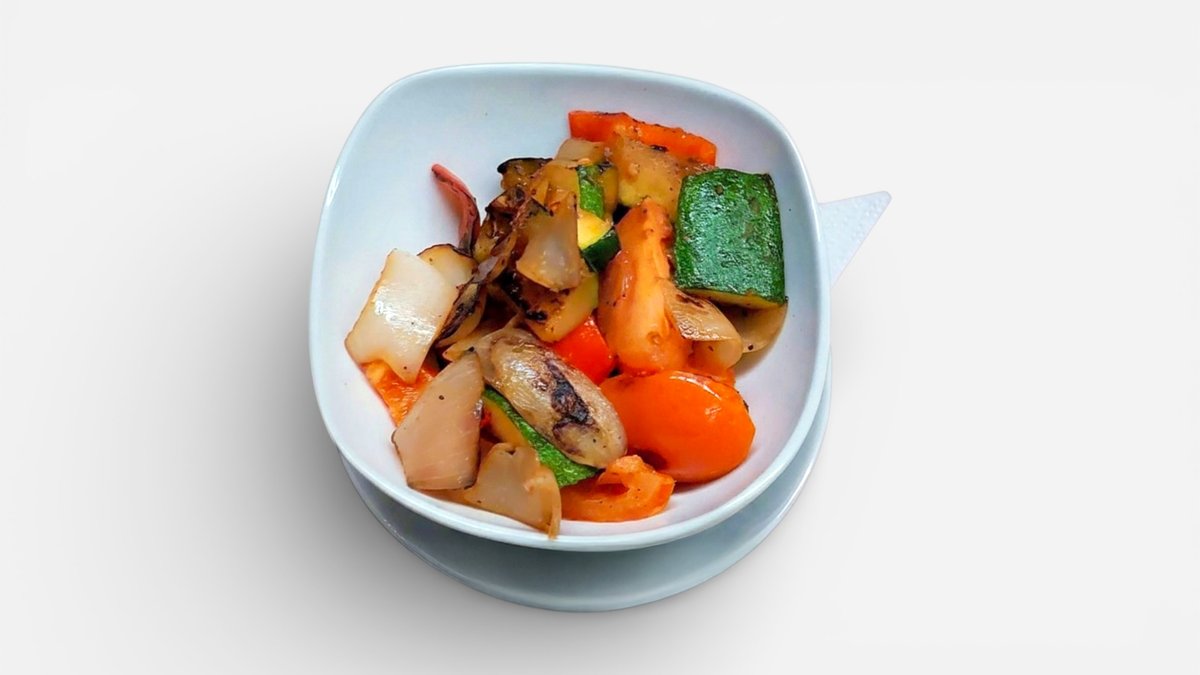 Kuřecí závitek plněný játry a grilovaná zelenina