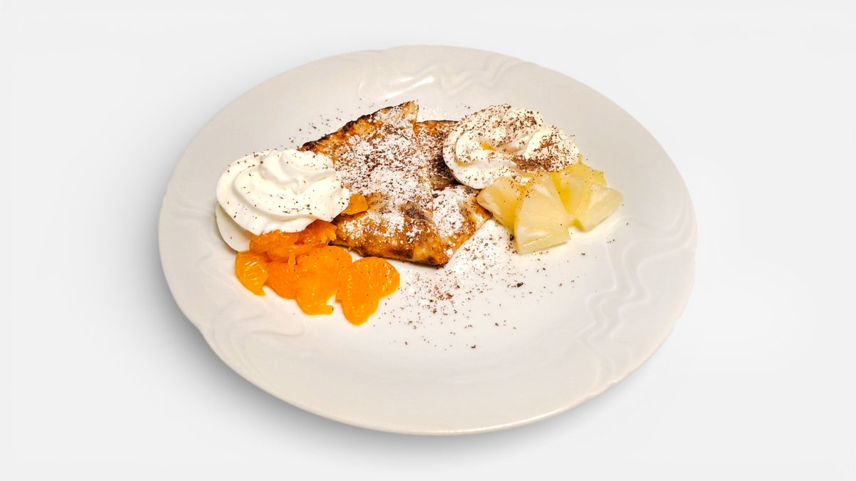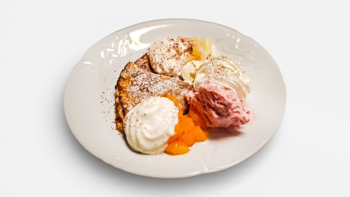 Palačinka se zavařeninou s ovocem a zmrzlinou