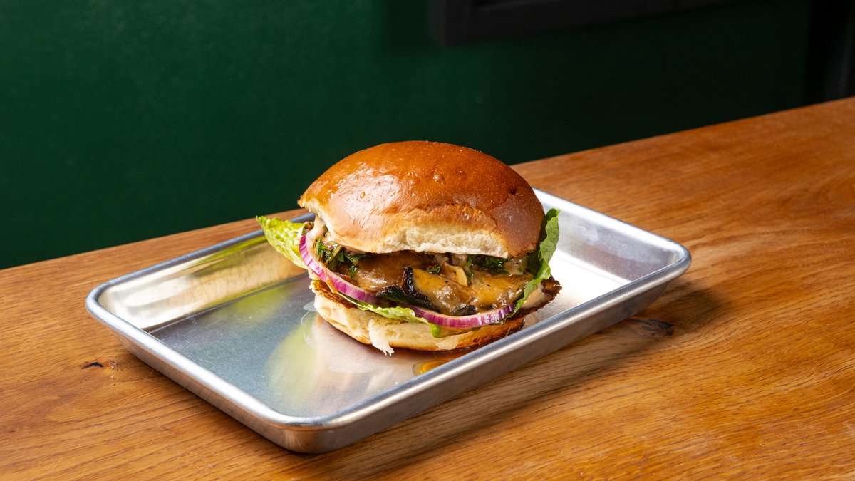 PORTOBELLO, RAJČATOVÁ MAJONÉZA, SÝR, CIBULE