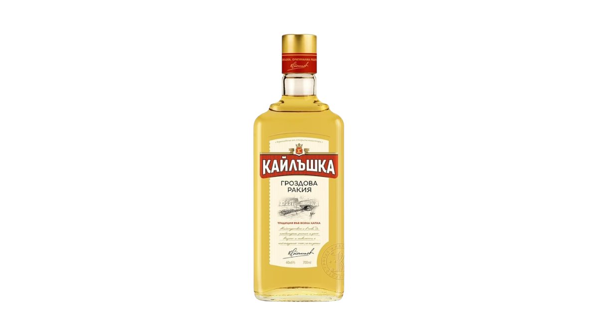 Pálenka Kailaška vinovice Kategorie: vinný pálenka Odrůda: Muškát a Ugni Blanc Výrobce: Vinprom Peštera Obsah alkoholu: 40.0% Objem: 0,7l Kajlaška rakija (pálenka) se vyrábí klasickou bulharskou technologií z vybraných hroznů odrůd Muškát a Ugni Blanc. Je jemná a pitná, se slámově žlutou barvu a příjemnou vůni muškátu, medu a vanilky. Plněna ve Vinprom Yambol. Zákaz prodeje alkoholických nápojů, osobám mladších 18let. Objednáním alkoholu stvrzuji, že jsem osoba starších 18-ti let.
