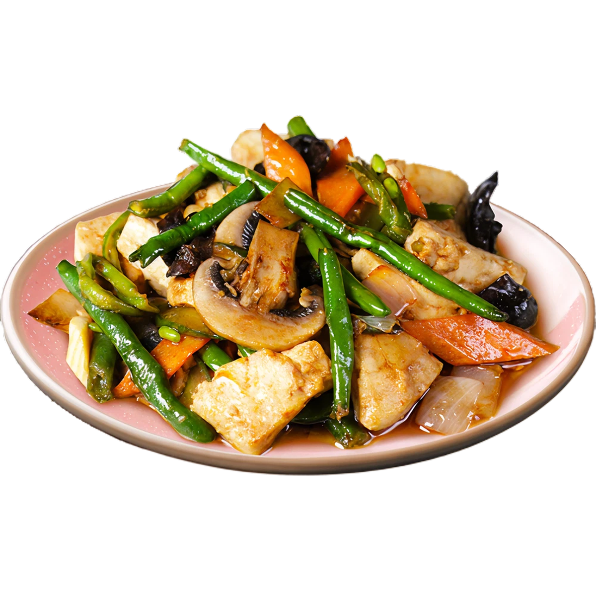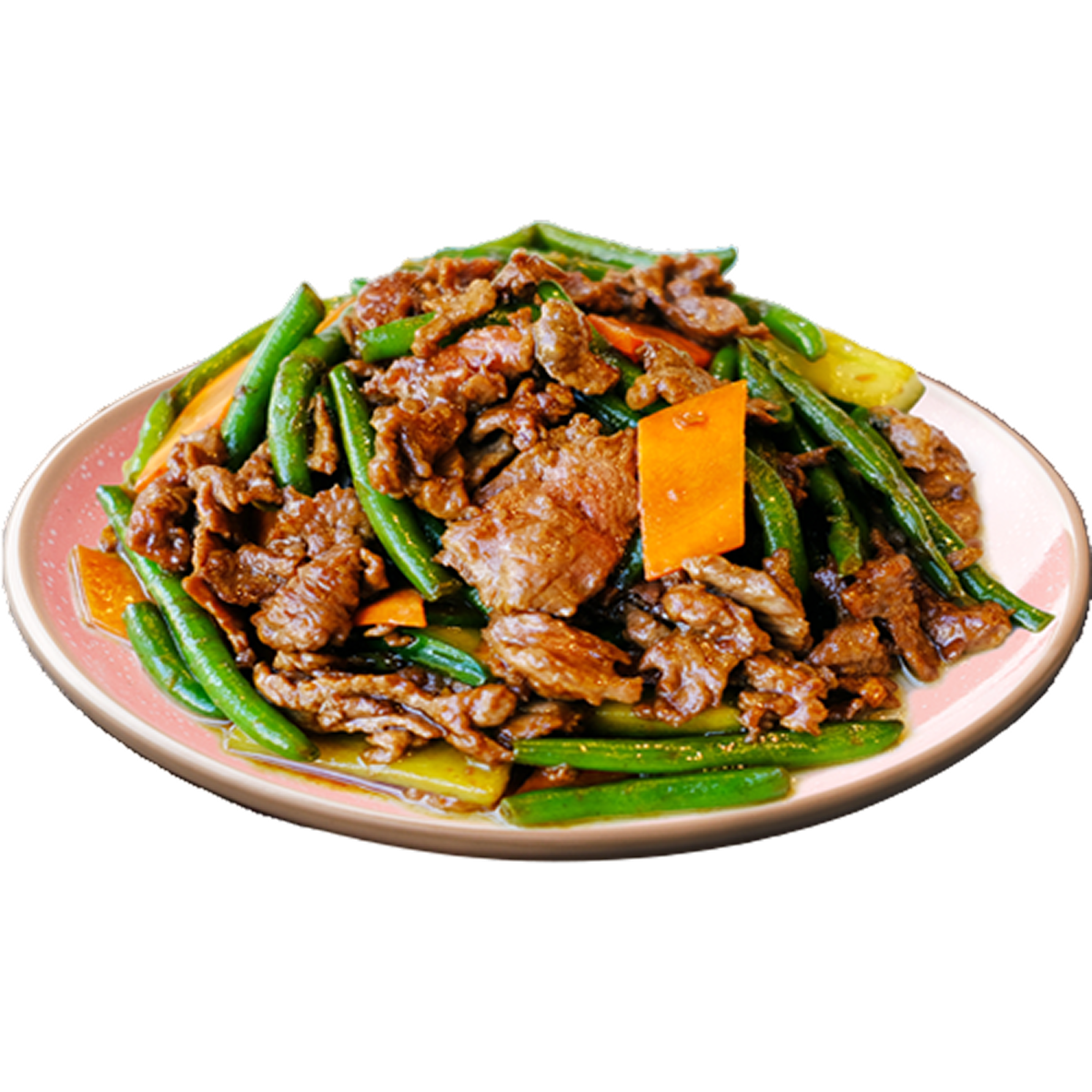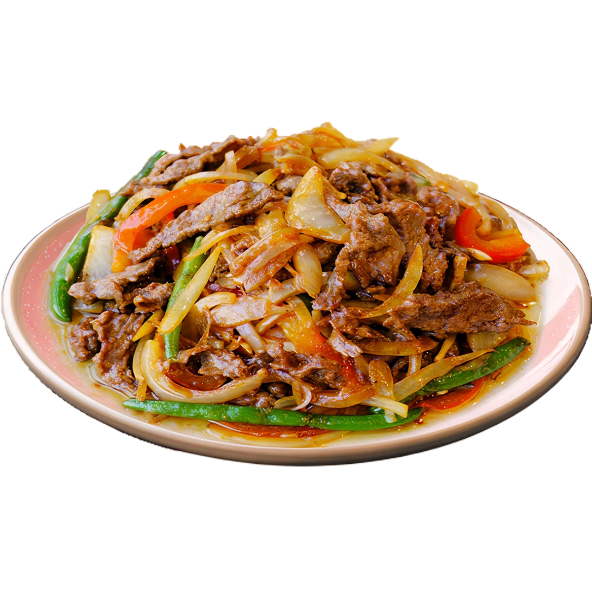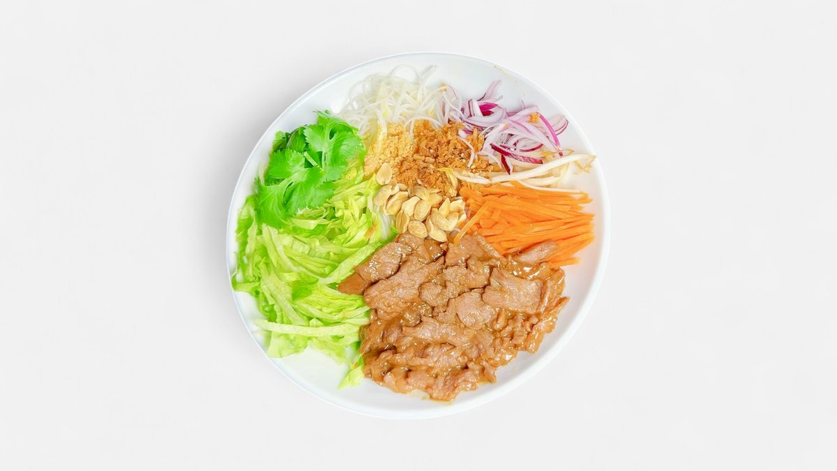 Hovězí maso ,mrkev.okurka .cibule.arasidy.ryzove nudle .omacka