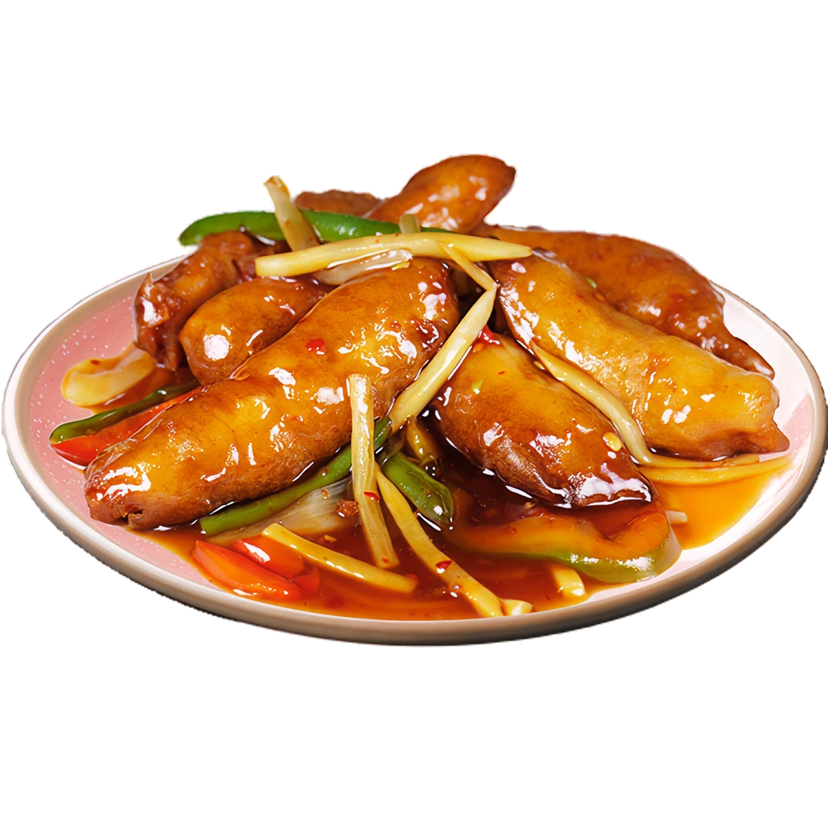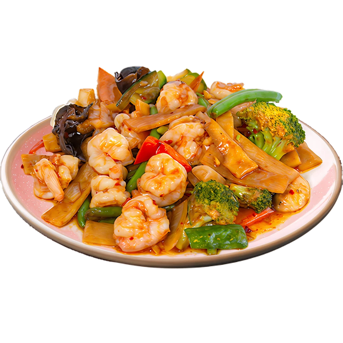 Uvnitř :avokado .kremove sýr.smazene krevety .okurka Vně :ebi .hokkigai.tobiko.sezam.majoneza omáčka .mango omáčka