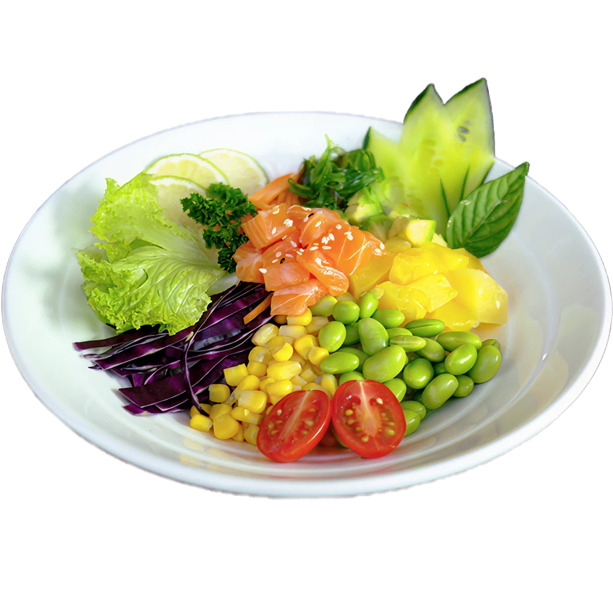 Losos,avokádo,smažené krevety,okurka.tobiko,majoneza,teriyaki omáčka