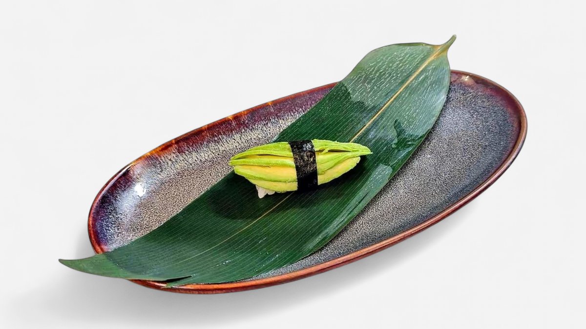 - Nigiri x 2 pcs: avocado, asparagus - Maki roll x 6 pcs: avocado, sesame - EVERGREEN roll x 6 pcs: ( Avocado, cucumber, radish, sweet potato, sesame, Teriyaki sauce )