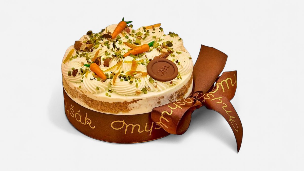 Sušenkový korpus se sladem a skořicí, cream cheese s vanilkou, krém s bílou čokoládou, pistácie, sušené mango. Doporučujeme pro 12 osob