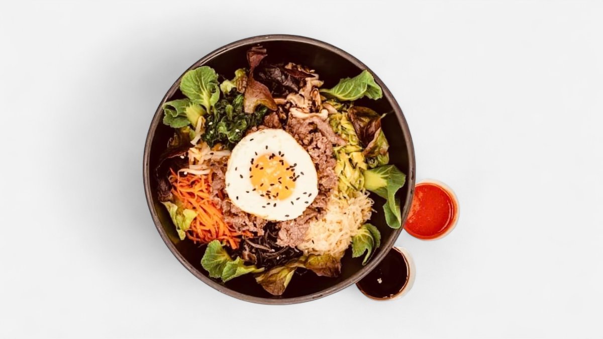 CZ: Velmi oblíbené Korejské jídlo. Velká miska s vařenou rýži, kde je na vrchu naskládaná sezónní zelenina jako je mrkev, zelí, salátové listy, nakládaná ředkev, houby shitake a na vrchu je volské oko EN: Is very popular Korean dish. It is a large bowl of cooked rice topped with seasonal vegetables such as carrots, cabbage, lettuce, pickled radish also known as takuan, shitake mushroom, fried egg on the top