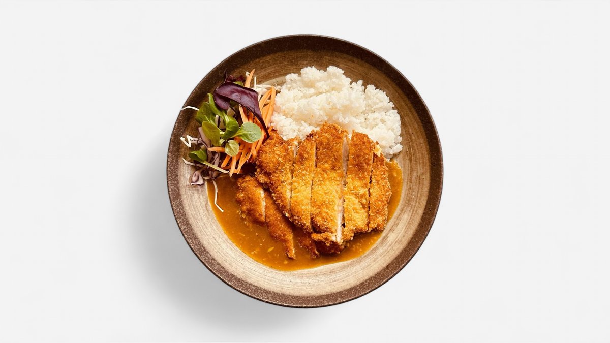 CZ: Kuřecí prsa obalované v japonské strouhance panko, japonské kari, rýže EN: Chicken breast in japanese panko breadcrumbs, japanese curry, rice