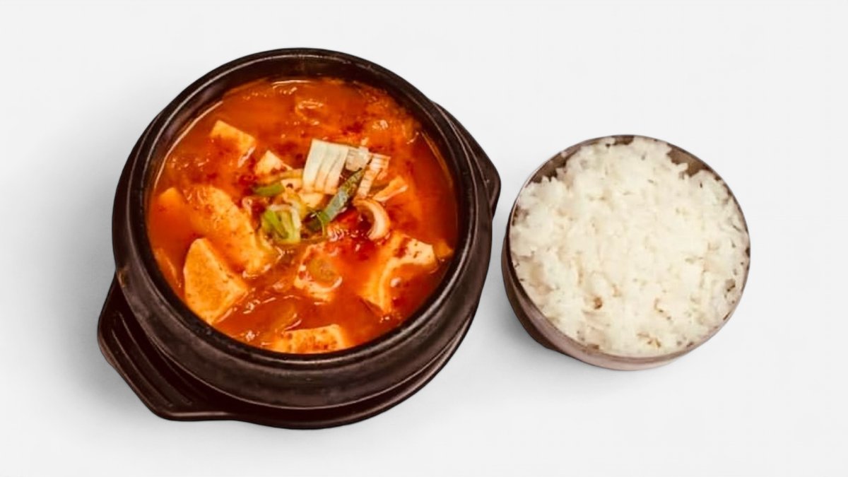 CZ: kimchi-jjigae je nejtradičnější korejská polévka. Vyrábí se hlavně z kimchi, hovězího masa, zeleniny, tofu, mrkve, chilli, česneku a zelené cibulky - podává se s rýži EN: kimchi-jjigae is the most traditional Korean soup. This soup is made mainly with kimchi, beef, vegetables, tofu, carrot, chili powder, garlic and scallions - it is served with gohan rice