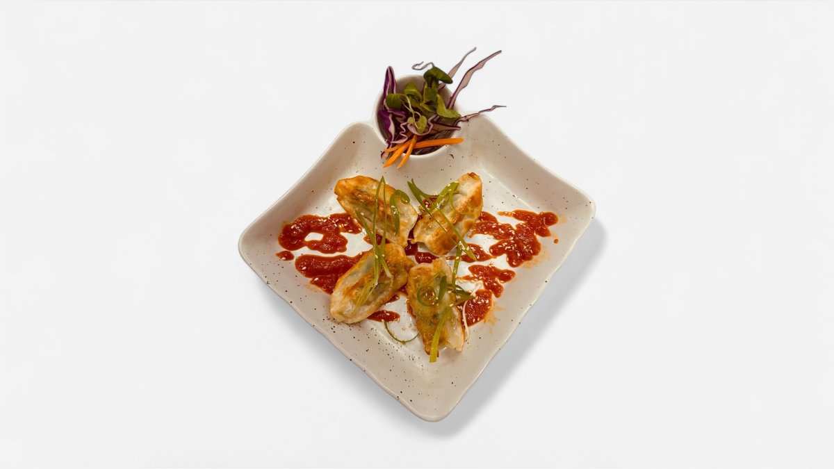 CZ: Gyoza jsou japonské knedlíčky smažené na pánvi, které jsou zespodu zlaté a křupavé, uvnitř jsou šťavnaté - tyto knedlíčky jsou z krevety a zeleniny, krevetí omáčka EN: Gyoza are Japanese pan-fried dumplings that are crispy and golden on the bottom, juicy on the inside - these dumplings consist of shrimps and vegetable, shrimp sauce